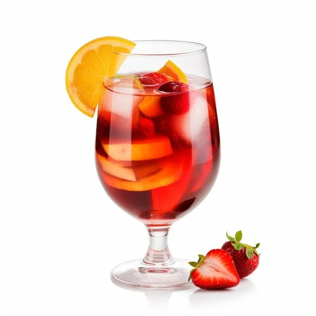 Ingredients: Red wine, brandy, orange juice, mixed fresh fruits (oranges, berries, apples).